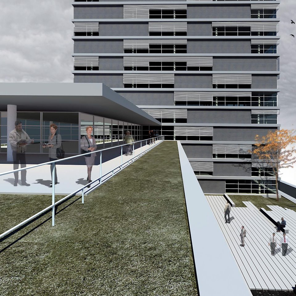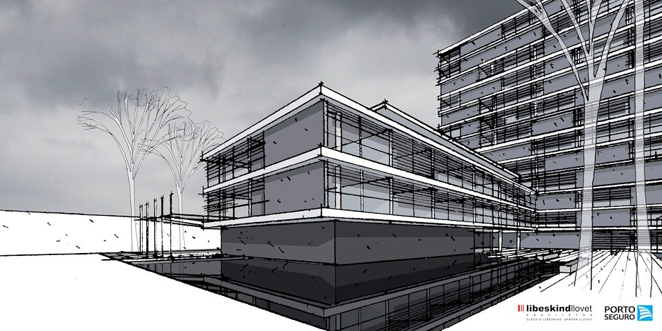 Libeskindllovet was commissioned by Porto Seguro, a Brazilian Insurance Company, to design a building for its growing team of Services Operators. The designers worked within zoning restrictions that limited intensity of land use, building height, building site coverage, as well as required existing trees to be kept. The proposed solution was able to benefit the client, maximizing the allowed construction, by applying a special legislation that exchanged public-use of private land for additional built area. To be granted such benefits by the municipal panel, the geometry of the building was conceived to emphasize the public vocation of its site. The design centralizes the business program in a tower and frees most of the ground level to public use with open gardens and a public-operated Venue.